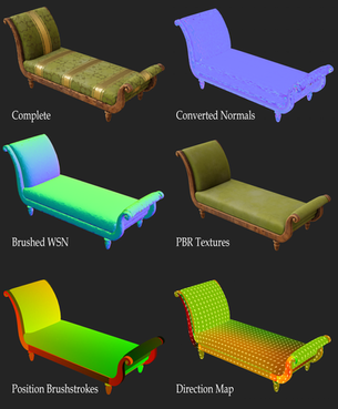 Authored Stylized Texturing Pipeline - Created a toolset authored in Substance Designer and structured in Substance Painter to be used on characters and props. Process involved custom splattered brush strokes which were guided by a paintable direction layer. These brush strokes would be used to alter the world space normals + user defined layers to apply the painted look. The world space normals would be converted to tangent as a last step to fit the standard unreal pipeline.